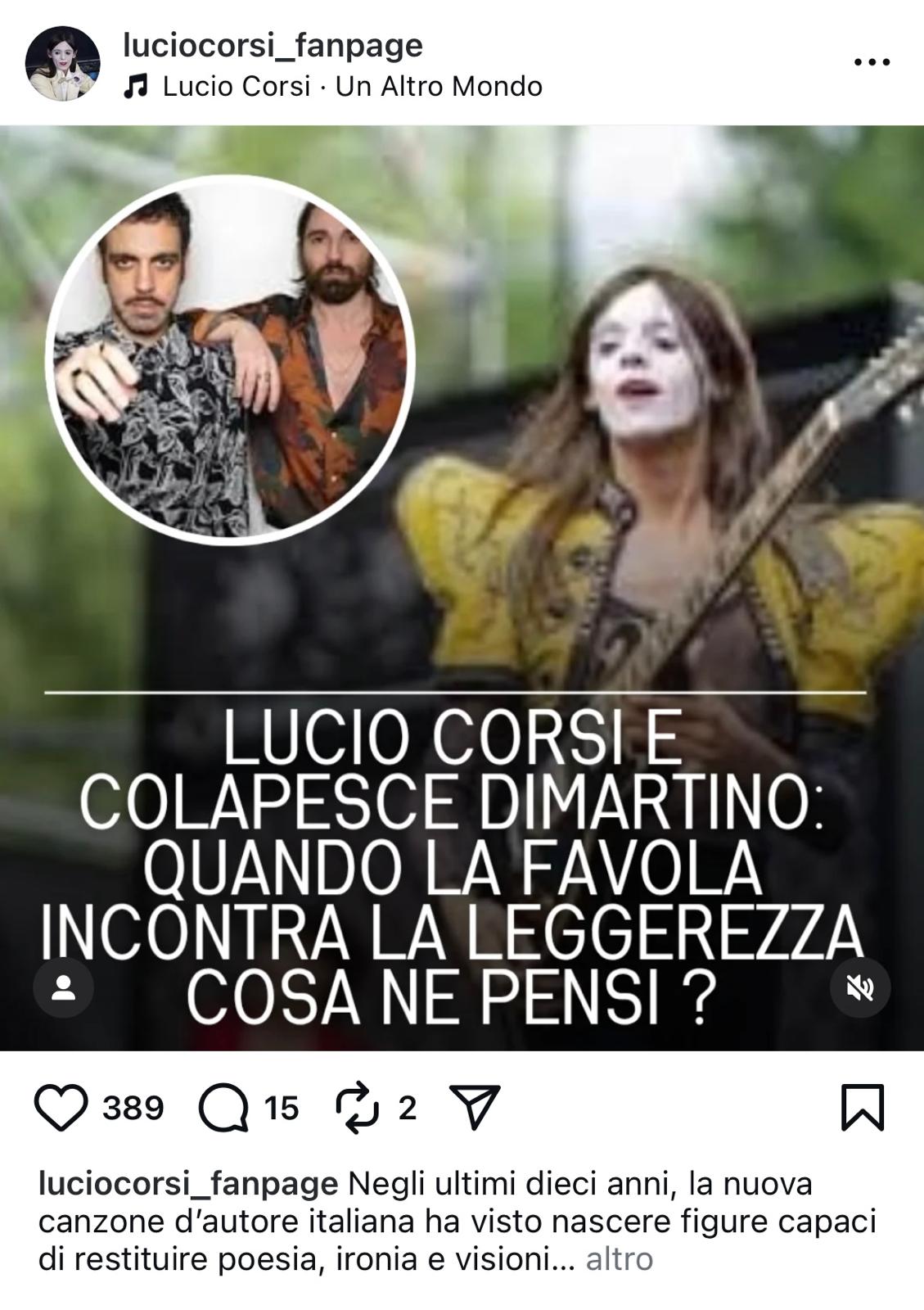 A volte le collaborazioni artistiche più affascinanti non nascono nei palazzi della discografia, ma tra le righe di un post sui social. È quello che è successo con la proposta lanciata da una fanpage di Lucio Corsi, che ha immaginato un incontro musicale con il duo Colapesce Dimartino.