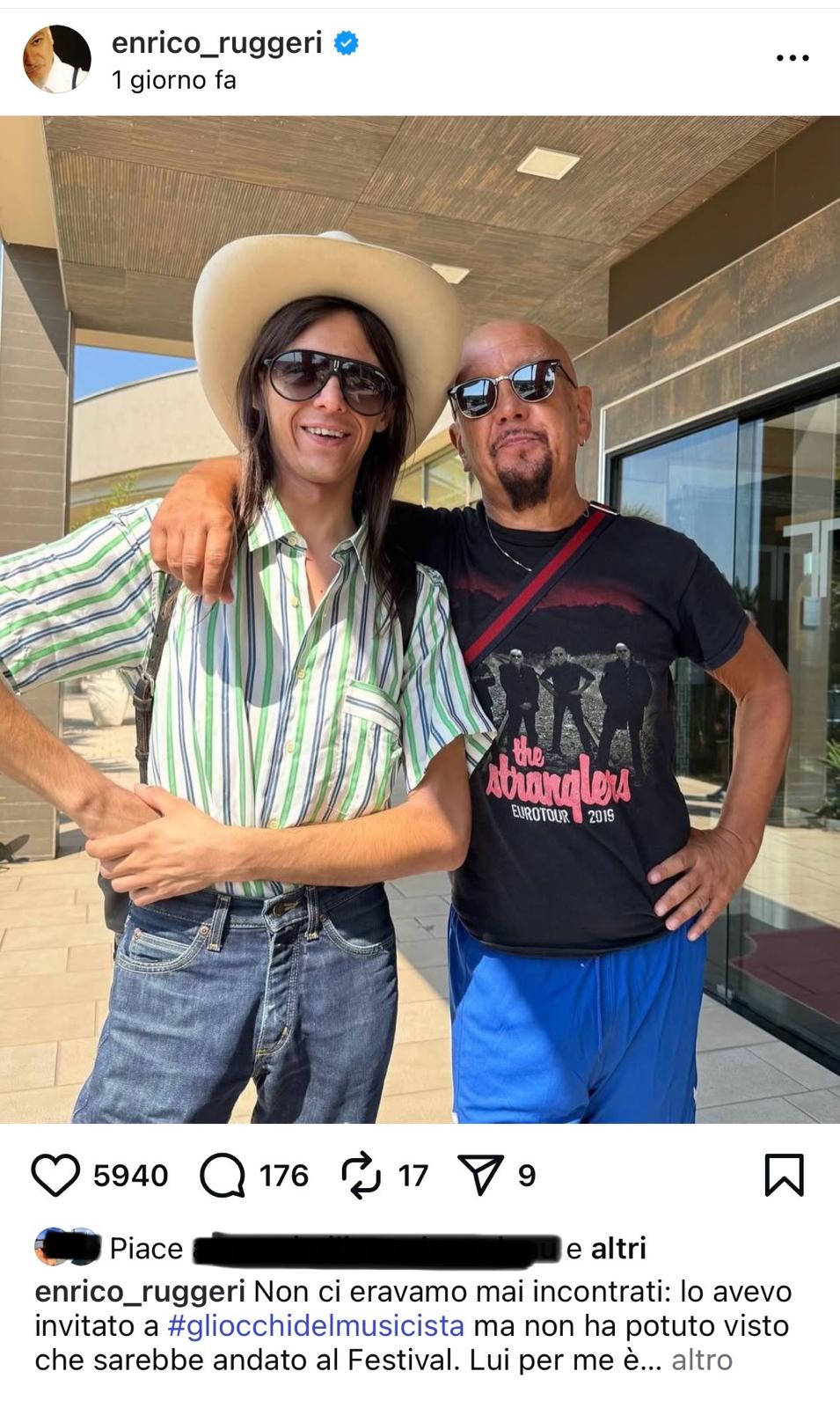 Un incontro inedito ma ricco di stima reciproca quello tra Enrico Ruggeri e Lucio Corsi. A raccontarlo è lo stesso Ruggeri in un post pubblicato sul suo profilo Instagram, dove ha condiviso una foto in compagnia del cantautore toscano.