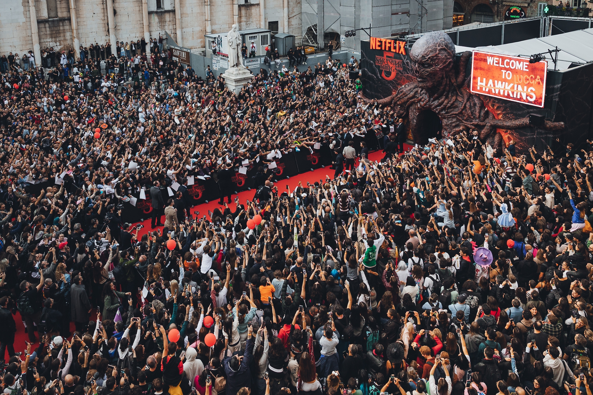 La giornata è iniziata con una conferenza stampa esclusiva al Teatro del Giglio Giacomo Puccini, dove i creativi e gli attori hanno condiviso emozioni, aneddoti e qualche anticipazione sulla stagione finale. Ma il momento più spettacolare è stato all’esterno: in Piazza San Michele, davanti al gigantesco padiglione Netflix trasformato per l’occasione nel “Vecna Pavilion”, oltre 9.000 fan hanno atteso l’arrivo del cast tra applausi, cori e cosplay.