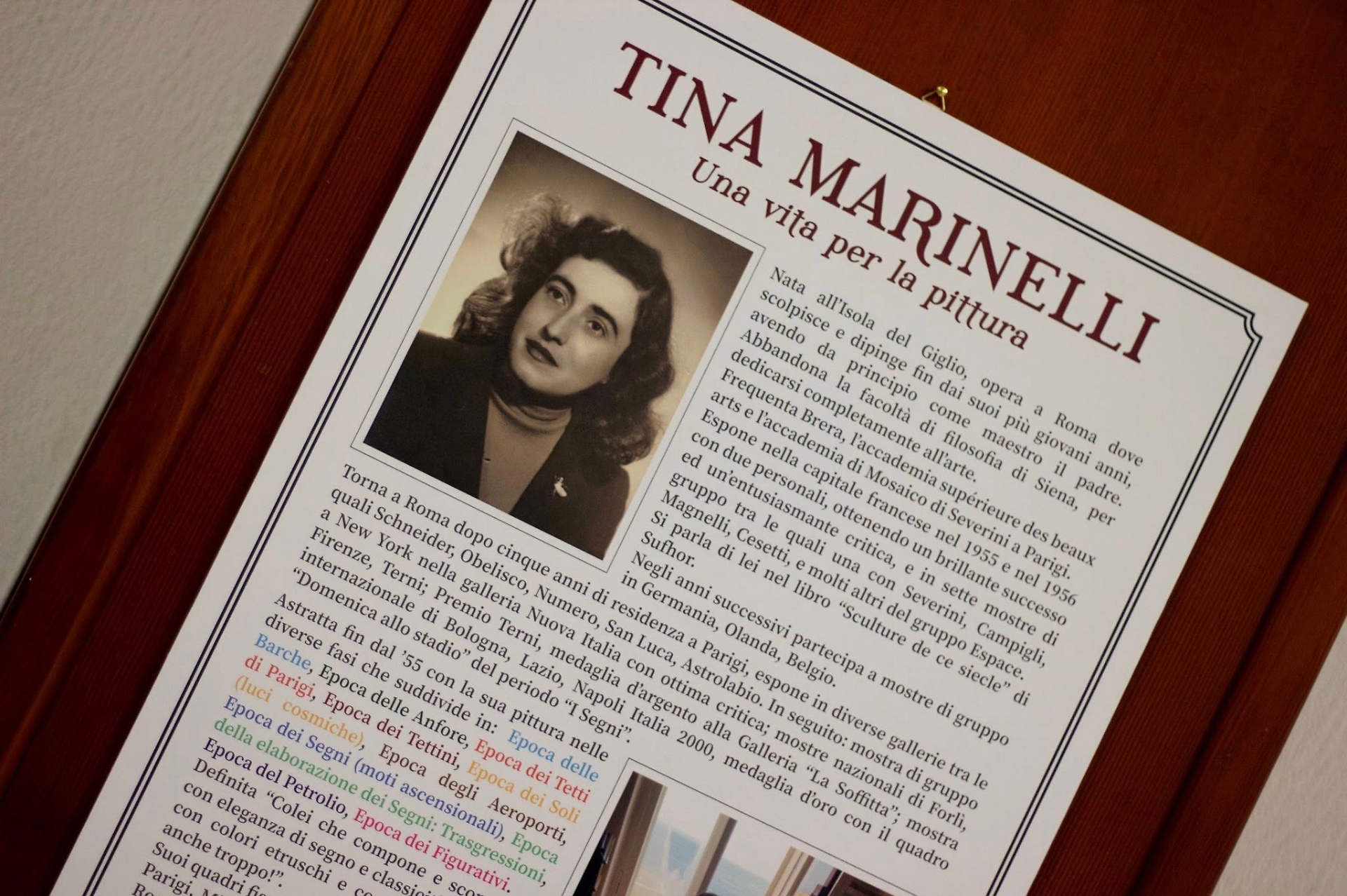 Il percorso artistico di Tina Marinelli rappresenta una parte importante del patrimonio culturale locale: “Iniziato da giovanissima, si è arricchito grazie all’insegnamento di maestri come Gino Severini, presso la cui Accademia di mosaico a Parigi l’artista ha perfezionato la propria tecnica astratta. Da lì, la sua arte ha viaggiato nel mondo, partecipando a mostre internazionali e portando con sé un frammento del nostro territorio”.