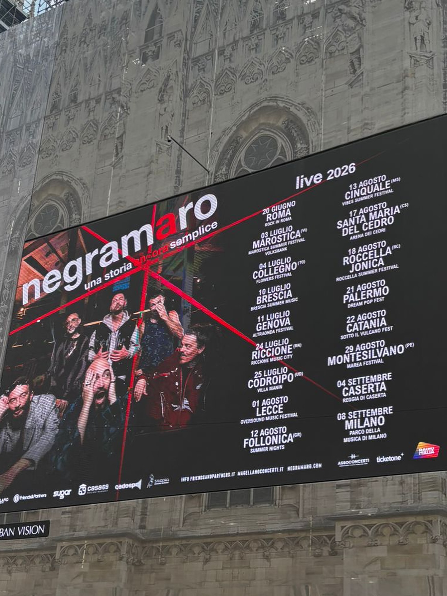 Sul Duomo di Milano spunta Follonica. La prestigiosa vetrina è arrivata grazie alla tappa del tour estivo dei Negramaro al festival "Summer Nights" in programma per il 12 agosto 2026 proprio nella città del Golfo.