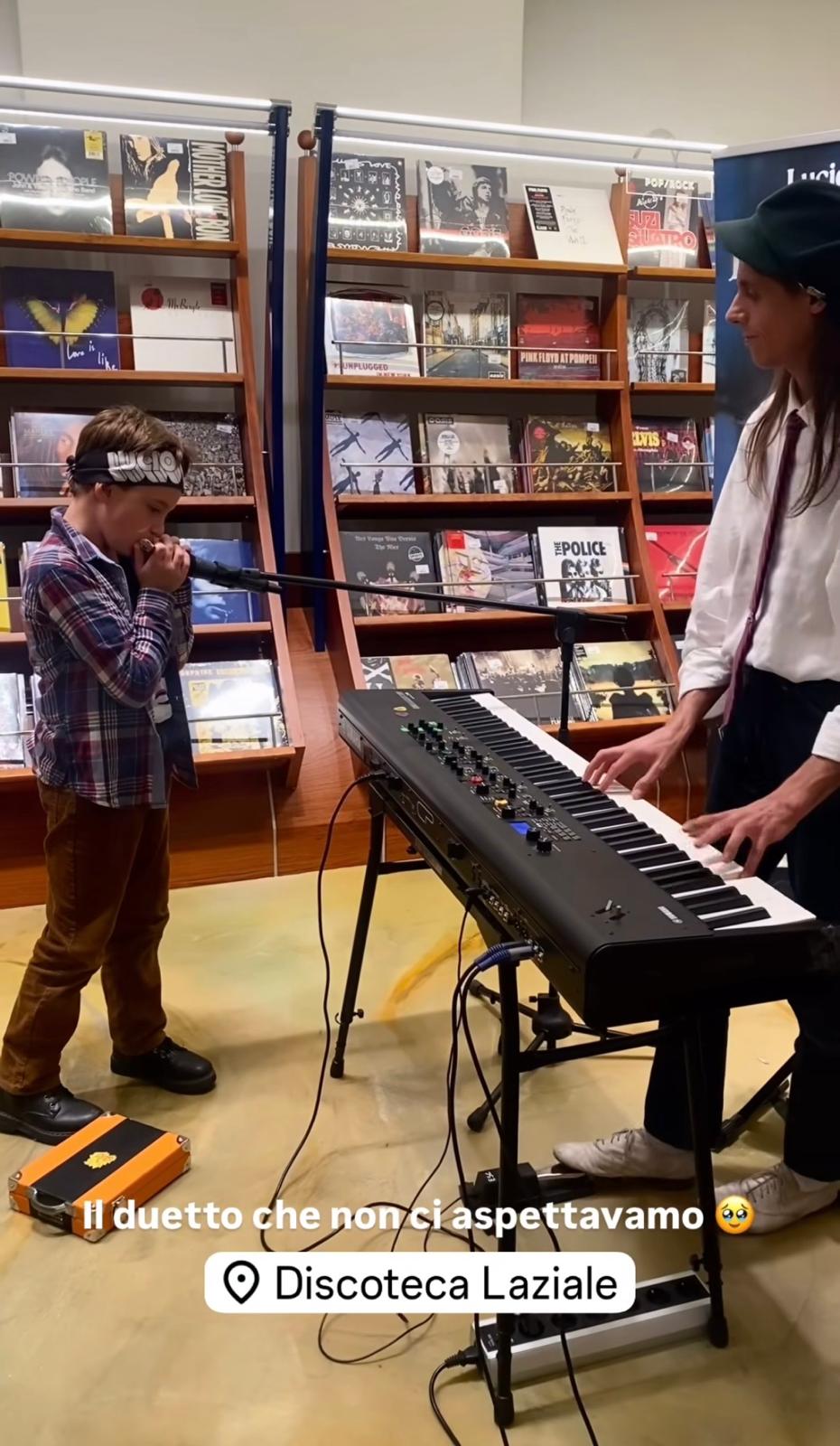 Ieri pomeriggio, un firmacopie si è trasformato in un vero e proprio spettacolo. Alla Discoteca Laziale di Roma, Lucio Corsi stava incontrando i fan per presentare il suo nuovo disco live quando un piccolo musicista tra il pubblico ha catturato la sua attenzione. Armato di armonica, il bambino, in prima fila, ha iniziato a suonare insieme al cantautore e Corsi, senza esitazione, lo ha invitato accanto alla tastiera.