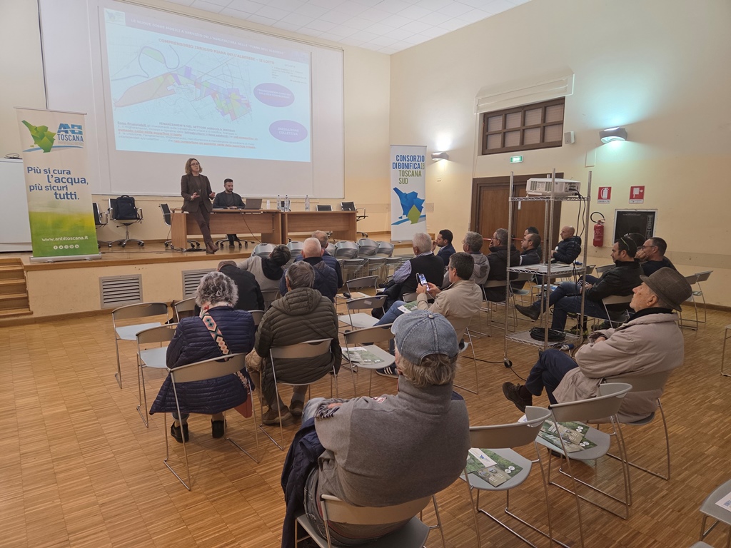Gli ingegneri Valentina Chiarello e Andrea Dottarelli hanno illustrato nel dettaglio il funzionamento del nuovo impianto: “Ai futuri consorziati abbiamo spiegato il nostro progetto – afferma Dottarelli – tramite le dighe mobili e un’opera di presa sul fiume Ombrone pomperemo l’acqua necessaria in una zona fortemente soggetta a siccità e anche a salinizzazione. Un messaggio importante che abbiamo cercato di far passare è che il futuro dell’irrigazione della Maremma, e più in generale di tutta la Toscana, non è più l'autoapprovvigionamento, ovvero il servizio idrico autonomo del singolo cittadino, ma l’irrigazione collettiva che significa innovazione, ottimizzazione e sinergia. Quello che abbiamo presentato è il primo di tre lotti di lavori nella piana dell'Alberese. Il secondo è già potenzialmente finanziabile, poi potremo procedere con il terzo”.