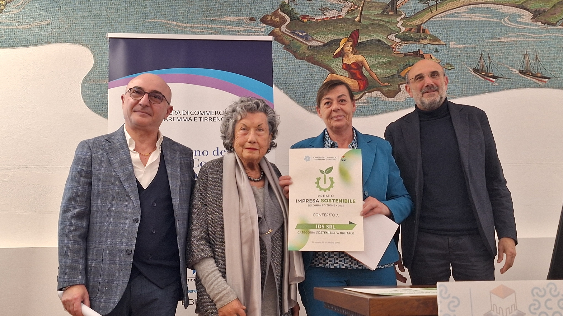 IDS di Piombino ha vinto il Premio Impresa Sostenibile 2025 nella categoria Sostenibilità digitale per un progetto che mira ad affrontare le sfide ambientali e tecnologiche attraverso la trasformazione digitale delle attività in chiave green. Oltre a dotare la sede operativa di impianto fotovoltaico con batterie di accumulo per la massimizzazione dell’autoconsumo, integrato da sistemi di raffrescamento a basso impatto energetico, IDS srl, ha migrato le infrastrutture IT su piattaforme cloud certificate, riducendo il bisogno di hardware fisico e con esso l’impronta di carbonio, a favore di un modello “zero server - zero carta”. Inoltre, l’impresa ha investito in software strategici per la transizione digitale sostenibile: uno per la gestione dei rifiuti e un altro che sfrutta Intelligenza Artificiale e algoritmi predittivi per gestire diagnosi energetiche avanzate e simulazioni dinamiche. Infine ha collaborato alla creazione di uno strumento operativo unico che integra la gestione dei progetti, la normativa tecnica e la sostenibilità nel settore edile.