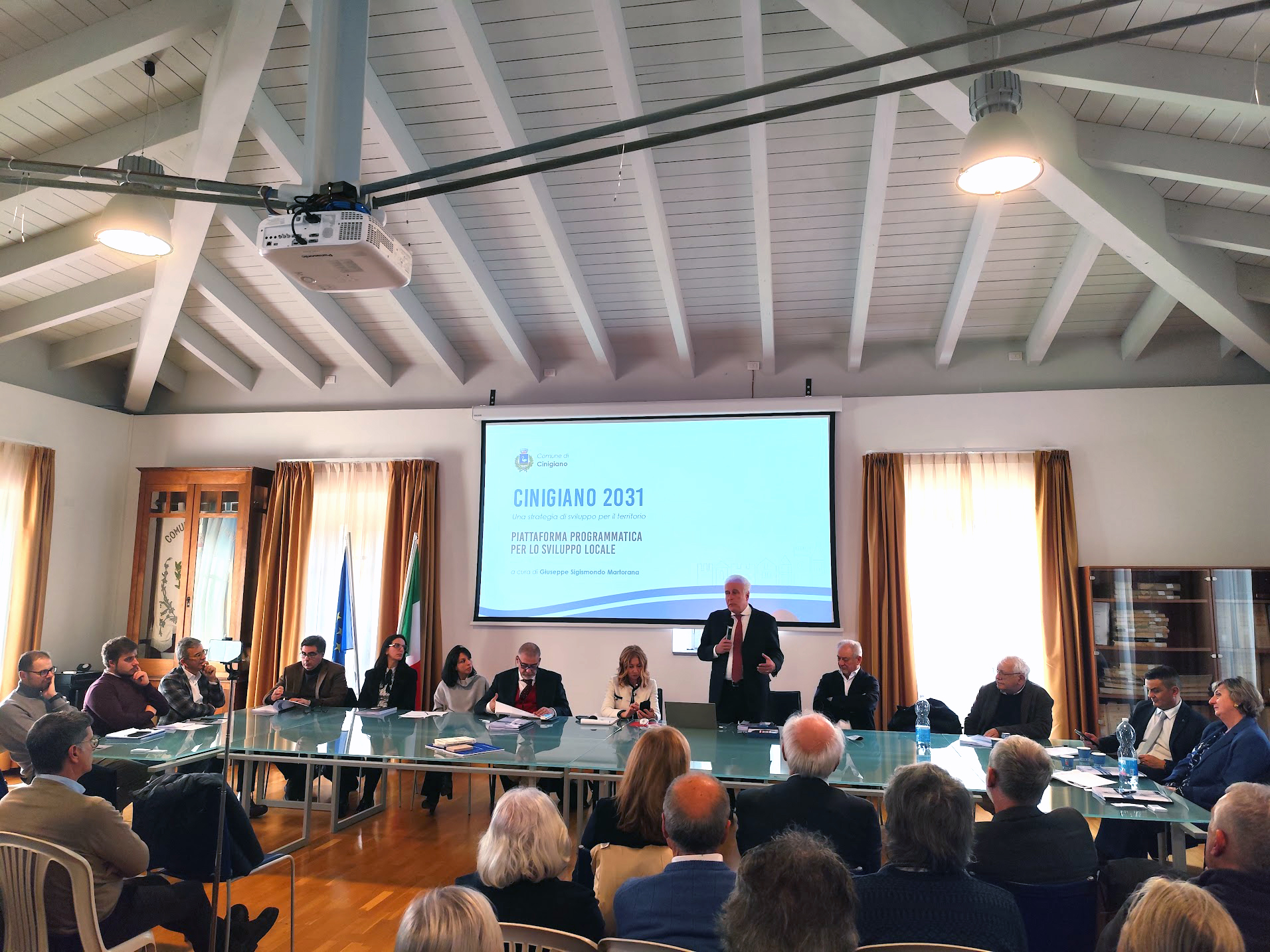 Da area fragile a polo urbano-culturale. La Piattaforma programmatica per lo sviluppo locale “Cinigiano 2031” è stata presentata oggi, 16 gennaio, in Sala consiliare dal sindaco Luciano Monaci, insieme all’estensore del programma Giuseppe Sigismondo Martorana, all’Ufficio di piano e alla presenza dei parlamentari Silvio Franceschelli e Marco Simiani, della consigliera regionale Lidia Bai, del presidente della Regione Toscana Eugenio Giani e del presidente della Provincia di Grosseto Francesco Limatola.