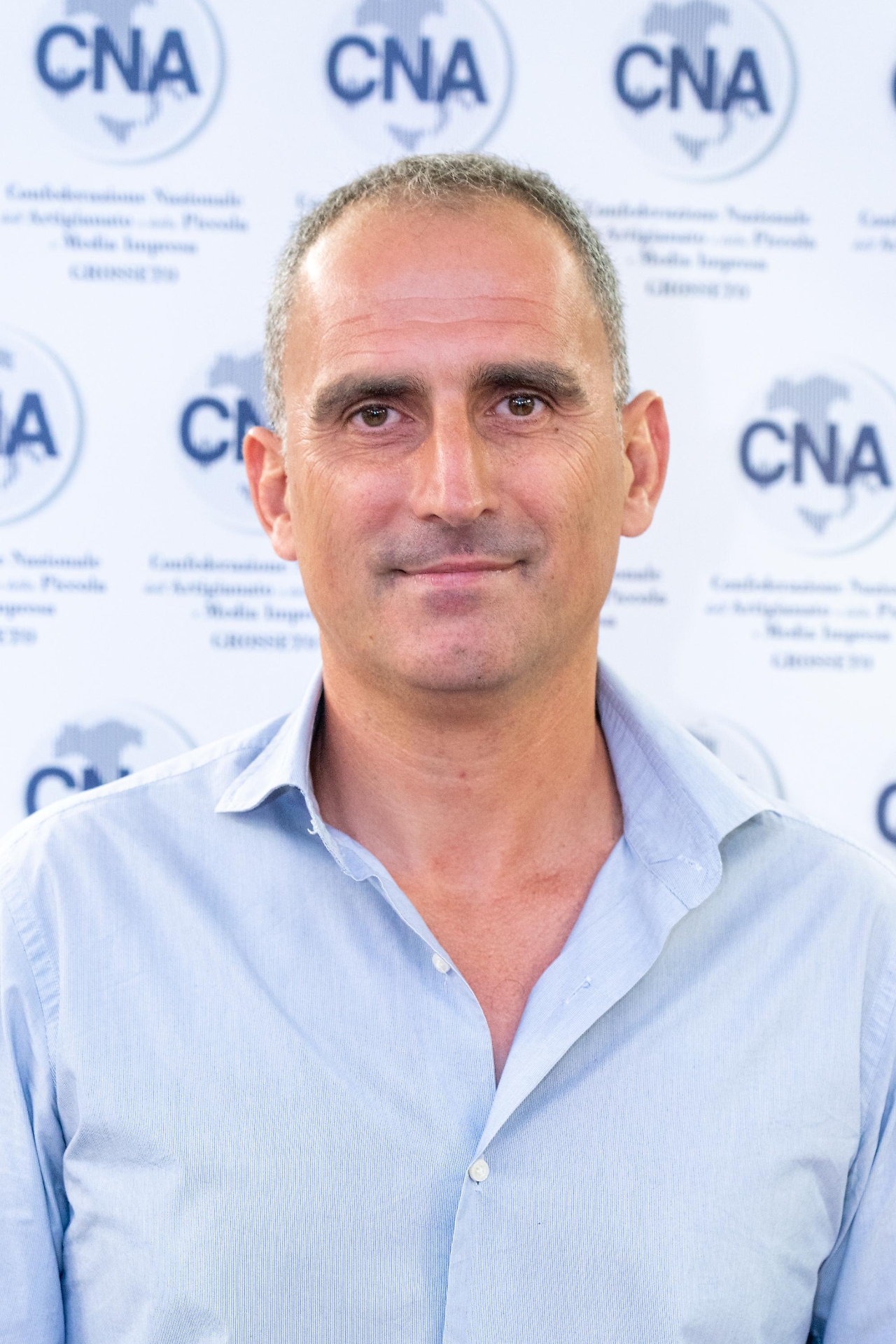 Nella cornice, Saverio Banini, presidente di Cna Grosseto (sfondo generato con Ai)