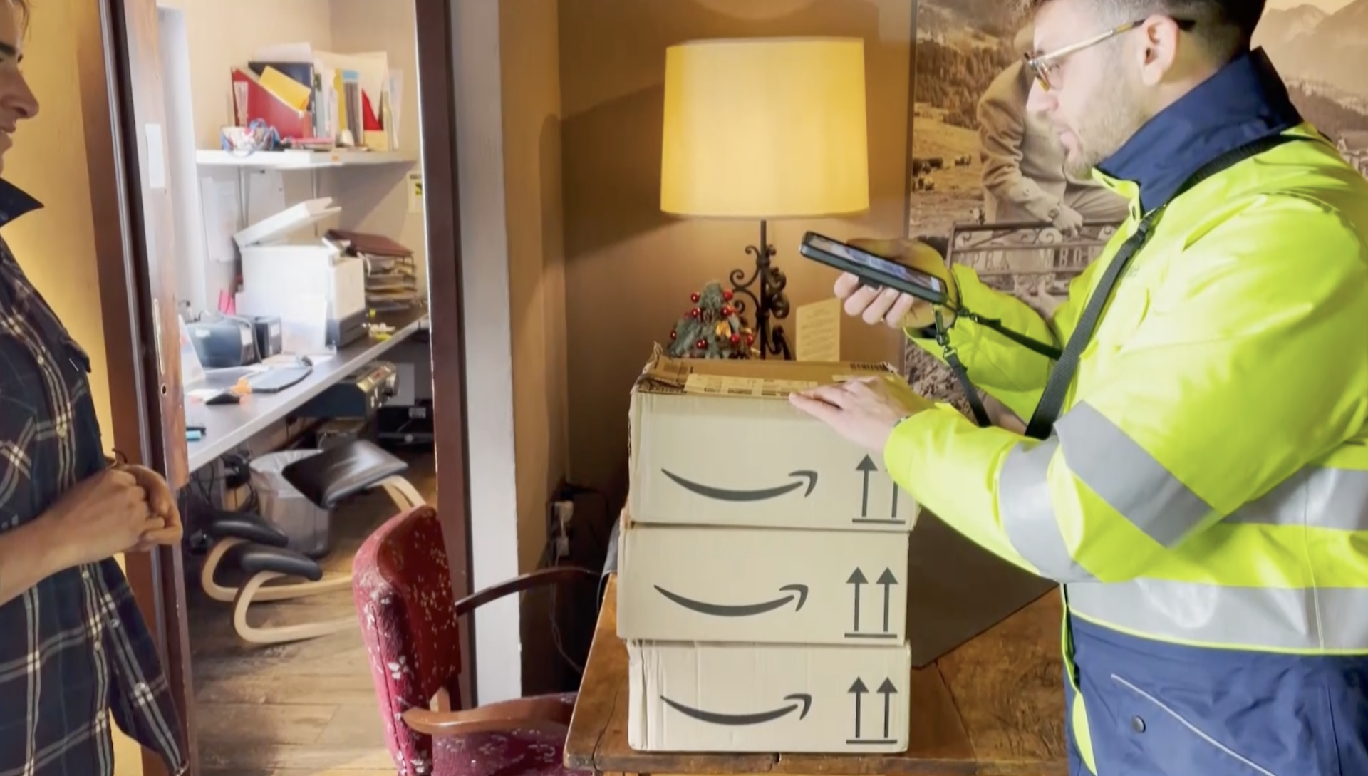 La consegna di alcuni pacchi da parte di un addetto Poste
