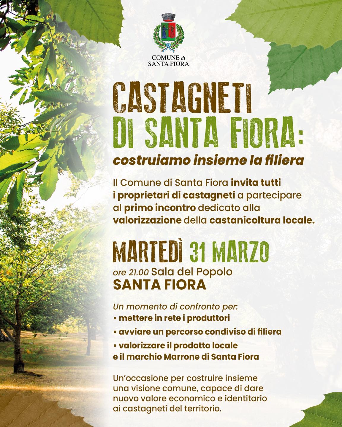 L'iniziativa, promossa dal Comune, punta a riunire i proprietari dei castagneti e i produttori locali per definire una strategia comune di valorizzazione del marrone santafiorese.