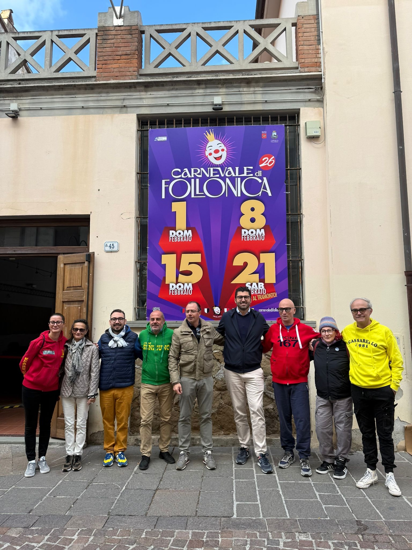 L’ufficializzazione delle date delle sfilate a Follonica è stata anche l’occasione per presentare un'altra novità, proseguendo nel percorso già avviato lo scorso anno, con il nuovo logo e le campagne di informazione sul sito web e i social: infatti da oggi – venerdì 24 ottobre – sono stati installati due banner promozionali con l’indicazione dei quattro appuntamenti dell’edizione 2026, uno nella centralissima via Roma, all’ingresso dell’ex Casello idraulico, e uno sul Palazzo comunale. La città, i suoi abitanti e anche i tanti visitatori di passaggio per turismo o per lavoro, inizieranno dunque già da ora a respirare l’aria del Carnevale, un modo per scandire in maniera ancora più incisiva il percorso di avvicinamento alle sfilate dei rioni. Sul banner di via Roma anche il QR Code che rimanda al sito internet dell’associazione, www.carnevaledifollonica.it, con tutte le informazioni della manifestazione.