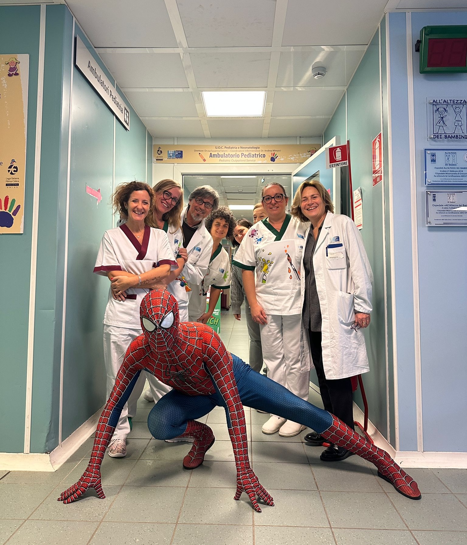 "Spiderman è un vero amico della Pediatria grossetana e conosce quello che le bambine e i bambini incontrano quando fanno accesso all’ospedale. Per questa ragione ogni anno, durante le festività, si presenta in reparto per scambiare qualche battuta con i piccoli pazienti, riuscendo a conquistare un sorriso e un gesto d’intesa. Tutta l’equipe della Pediatria e del Pronto soccorso pediatrico con la direttrice Susanna Falorni e il direttore dell’Emergenza urgenza, Mauro Breggia, ringraziano Spiderman per questa sua iniziativa".
