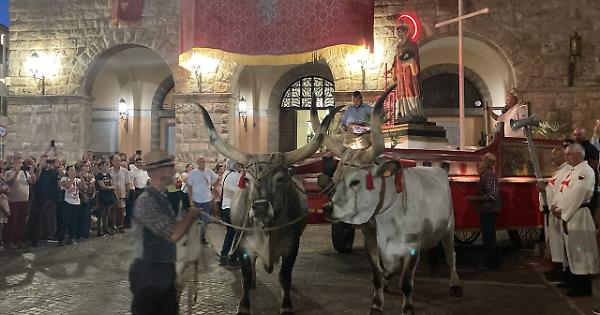 Venerdì 9 agosto la grande processione in onore del patrono di Grosseto. L'inizio sarà alle 21 dalla cattedrale, dove la statua del santo sarà installata sul carro decorato trainato da due splendidi buoi maremmani – Tiburzi e Fioravanti – di proprietà di Loriano Bargagli, allevatore di Vetulonia, titolare dell’azienda agricola Badia Vecchia. A condurre i due bovi sarà Marco Stefanucci, mentre la cinquecentesca campana, anch’essa collocata sul carro, batterà i suoi rintocchi per annunciare il passaggio del Santo.