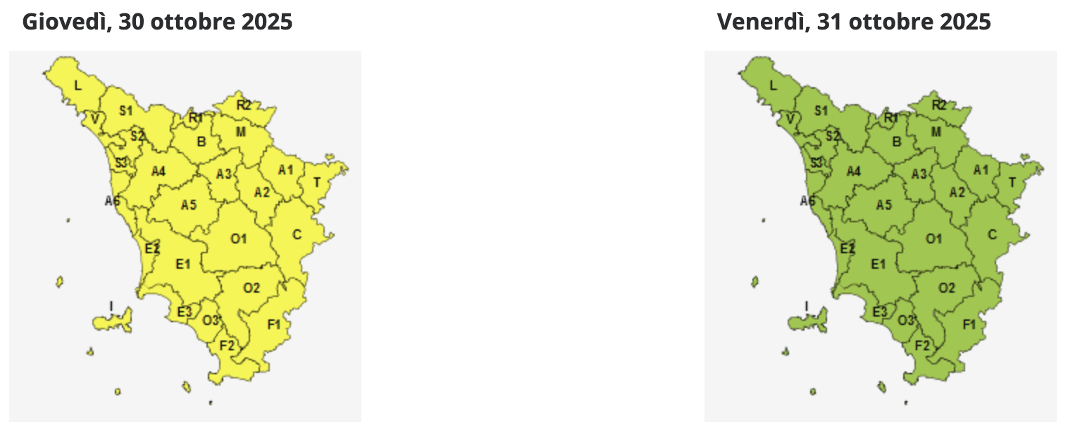 La Sala operativa unificata della protezione civile regionale ha emesso un codice giallo per rischio idraulico del reticolo principale dalle 13 di oggi fino alle 13 di domani per le zone del bacino del Bisenzio e del Serchio. Inoltre ha esteso fino alla mezzanotte di oggi il codice giallo per temporali forti e rischio idrogeologico idraulico del reticolo minore per tutta la regione.
