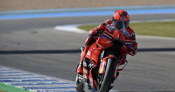 LE MANS (FRANCIA) (ITALPRESS) - Marc Marquez, in sella alla Ducati ufficiale, domina la Practice di MotoGP del Gran Premio di Francia, firmando il tempo di 1'29"855, nuovo record del tracciato. Sul circuito di Le Mans, in seconda posizione si infila il beniamino di casa, Fabio Quartararo (Yamaha, +0"177); terzo, invece, Pecco Bagnaia (Ducati, +0"184). Bene anche il rookie Fermin Aldeguer (Ducati Gresini, +0"366), autore del quarto crono, mentre chiude quinto il leader della classifica mondiale, Alex Marquez (Ducati Gresini, +0"401). Nell'ordine, completano la top ten e accedono al Q2 Jack Miller (Yamaha Prima Pramac), Pedro Acosta (Ktm), Maverick Vinales (Ktm Tech3), Franco Morbidelli (Ducati Pertamina) e Marco Bezzecchi (Aprilia). Tra gli altri, rimangono out Zarco, Di Giannantonio, Binder e Bastianini. - Foto Ipa Agency - (ITALPRESS). xl9/mc/red 09-Mag-25 17:03