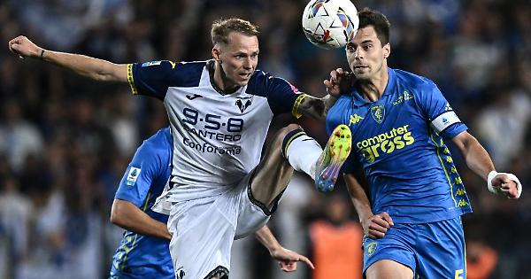EMPOLI (ITALPRESS) - È notte fonda al Castellani per l'Empoli. La sconfitta per 2-1 contro l'Hellas Verona condanna gli uomini di D'Aversa alla retrocessione in Serie B assieme al Venezia: si salvano, invece, Lecce e Parma. Le reti decisive per il successo degli scaligeri portano la firma di Serdar e Bradaric: il gol del momentaneo pareggio dei toscani era stato realizzato da Fazzini. L'Hellas Verona vendica così il 4-1 subito all'andata e chiude il proprio campionato al quattordicesimo posto. La serata dell'Empoli prende immediatamente una brutta piega dopo appena quattro minuti di gioco. Dal limite dell'area, infatti, Serdar riceve palla da Duda e scarica un preciso destro all'angolino che vale l'1-0 del Verona. Anche a causa dell'iniziale vantaggio del Venezia (poi rimontato dalla Juve), sul Castellani cala il silenzio. L'Empoli non ci sta e reagisce con grande determinazione, schiacciando per lunghi tratti gli ospiti nella propria trequarti. Gli assalti dei toscani crescono di pericolosità sul finale di frazione, quando Fazzini con una conclusione dalla distanza impegna Perilli, in campo al posto dell'infortunato Montipo. La rete del pari è però nell'aria e viene realizzata proprio da Fazzini, voglioso di prendersi la squadra sulle proprie spalle: dopo la risposta di Perilli sul colpo di testa di Esposito, il numero dieci dell'Empoli arriva per primo sulla sfera e la devia in rete. Anche nella ripresa si gioca quasi solo nella metacampo del Verona, ma i padroni di casa faticano a creare occasioni nitide da gol. D'Aversa allora prova ad aumentare il peso del proprio attacco, inserendo Colombo e Anjorin. Al primo affondo del secondo tempo, però, il Verona con cinismo si riporta in vantaggio. La rete del 2-1 porta la firma di Bradaric che, di testa, capitalizza al meglio l'assist al bacio di Tchatchoua. Un Empoli disperato si riversa nuovamente all'attacco, esponendosi alle ripartenze degli scaligeri, pericolosi in velocità con Mosquera e Livramento. Al 91' ancora Fazzini prova a salvare la baracca, sfiorando il gol su punizione. Il finale è dunque amaro per l'Empoli che torna in B dopo aver vinto due sole partite nel girone di ritorno. L'ex Zanetti salva così il Verona, sgambettando la sua ex squadra. - Foto: Image - (ITALPRESS) xl9/pc/red 25-Mag-25 23:16