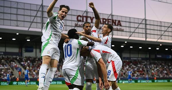 TRNAVA (SLOVACCHIA) (ITALPRESS) - Missione compiuta per l'Italia, che gioca una brutta partita ma si guadagna il pass per i quarti di finale degli Europei Under 21: battuti per 1-0 i padroni di casa della Slovacchia, che sono, invece, eliminati. Rispetto alla prima partita di queste fasi finali, giocata contro la Romania, Nunziata lancia titolari Coppola e Casadei, con Ghilardi e Koleosho che si devono accomodare in panchina. Parte molto forte la Slovacchia con una pressione alta, guadagnandosi una prima occasione su calcio di punizione: cross di Suslov, Obert anticipa Pirola di testa ma manda sul fondo. Alla prima occasione, però, l'Italia passa in vantaggio: proprio Casadei recupera palla di forza nella propria metà campo e lancia il contropiede, Gnonto controlla non al meglio ma riesce a restituire palla al centrocampista del Torino, che resiste al ritorno di Jakubko e batte Belko con il tocco sotto di sinistro. I ritmi rimangono alti ma soprattutto per la nazionale padrona di casa, mentre l'Italia fatica a uscire palla al piede e a tenere il possesso, affidandosi perlopiù ai lampi di Baldanzi. Ancora una partita complicata, invece, per Gnonto, che lavora molto per la squadra ma non riceve palloni giocabili in profondità. Alla mezz'ora la difesa azzurra libera una situazione intricata, poi nel finale di tempo Coppola trova un colpo di testa troppo debole e centrale per impensierire Belko. Nella ripresa, la Slovacchia alza ancora di più i giri del motore e l'Italia quasi sparisce dal campo: sono tante le palle perse, anche in zone caldissime del campo, che fanno arrabbiare Nunziata. Al 57', Leo Sauer e Nebyla mancano la deviazione su un cross insidioso su cui Desplanches non esce. Al 63' Baldanzi esce dal campo dolorante dopo aver subito fallo. Poco dopo, su un angolo battuto da Pisilli, Pirola calcia alto una palla vagante da pochi metri, sprecando un'occasione ghiottissima: probabilmente il gol sarebbe stato annullato per un fallo evidente dello stesso difensore, che però poteva calciare meglio. Pirola è decisamente più efficace in fase difensiva, dove stoppa uno scatenato Suslov, di gran lunga il migliore dei suoi, mentre Koleosho prova a dare la scossa in avanti. Anche i minuti finali sono di grande apprensione per l'Italia, che deve nuovamente ringraziare Desplanches, super al 90' nel chiudere lo specchio a Nebyla sul cross di Rigo. Servirà un deciso cambio di marcia nelle prossime partite, sia nell'intensità che nelle scelte di gioco: troppe le ripartenze sprecate per tocchi imprecisi. Martedì il match contro la Spagna per il primato nel girone. - foto Image - (ITALPRESS). spf/pdm/red 14-Giu-25 23:03