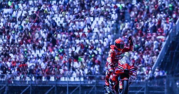 SCARPERIA (ITALPRESS) - Marc Marquez, in sella alla sua Ducati, vince anche la sprint race del Gran Premio d'Italia, nono appuntamento del Mondiale di MotoGP. Sul circuito del Mugello il leader della classifica iridata, nonostante un problema in partenza, risale dalla quinta alla prima posizione in due giri e batte il fratello Alex (Ducati Gresini). Completa il podio al terzo posto Pecco Bagnaia (Ducati), appena davanti a Maverick Vinales (Ktm Tech3). A seguire tris di italiani con Fabio Di Giannantonio (Ducati VR46) quinto, Marco Bezzecchi (Aprilia) sesto e Franco Morbidelli (Ducati VR46) settimo. Cadute per le Ktm di Pedro Acosta e Brad Binder. - foto Ipa Agency - (ITALPRESS). xn9/glb/red 21-Giu-25 15:35
