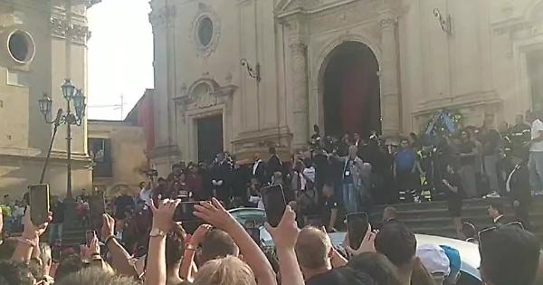 MILITELLO IN VAL DI CATANIA (ITALPRESS) - Una folla di oltre 3 mila persone si è radunata nella piazza antistante il Santuario di Santa Maria della Stella di Militello in Val di Catania e nelle vie limitrofe, per dare l'ultimo saluto a Pippo Baudo. All'interno della chiesa oltre 300 persone, i due figli Tiziana e Alessandro, i suoi stretti collaboratori, concittadini e amici della sua città natale, personaggi e colleghi del mondo dello spettacolo, rappresentanti delle istituzioni, tra questi, il presidente del Senato, Ignazio La Russa, il presidente della Regione Siciliana, Renato Schifani, il ministro delle Imprese e del Made in Italy, Adolfo Urso, il sottosegretario alla Cultura, Gianmarco Mazzi, e il presidente dell'Ars, Gaetano Galvagno. Tra i presenti, oltre ai figli, agli amici, ai rappresentanti delle istituzioni, molti volti noti del mondo dello spettacolo, tra questi, Michele Guardì, Al Bano Carrisi in lacrime, Gigi D'Alessio, Lorella Cuccarini, amica di sempre che insieme a Baudo ha condotto moltissime trasmissioni rimaste nella storia della televisione. A officiare la funzione religiosa è stato il vescovo di Caltagirone, monsignor Calogero Peri. Con lui, co-officiante, don Giuseppe Luparello, parroco del santuario di Santa Maria della Stella. L'omelia è stata affidata a don Giulio Albanese, il padre spirituale di Baudo. "La parola di Dio ricorda che i giusti splenderanno come stelle del firmamento. Carissimo Pippo, noi ti auguriamo di splendere come una stella non solo nel firmamento degli uomini, come già avviene, ma tanto luminoso anche e soprattutto in quello di Dio. Nel firmamento di Dio si splende solo per l'amore operoso e concreto che abbiamo ricevuto e vissuto, tutto il resto si dissolve perché solo l'amore resta", ha detto il vescovo Peri nel corso dei funerali. "Siamo qui per dare attestato di stima e gratitudine, ma anche ultimo saluto all'amico Pippo Baudo che ha terminato il suo percorso in terra, siamo qui per celebrare nella fede la Pasqua del Signore e la nostra Pasqua, l'unica capace di sfidare la morte e uscirne vittoriosa. Ma facciamo questo con dolore per il distacco che ciascuno porta dentro di sé, il mistero della morte, al contrario della vita, mette a tacere tutte le nostre parole e sicurezze", ha aggiunto. "In questa circostanza siamo tutti insieme come popolo di Dio per affermare una fraternità di cui il compianto Pippo è stato testimone esemplare. Questa cittadina è orgogliosa dei semi di bene che ha sparso nel corso della propria vita, ha reso onore a Militello, alla Sicilia e all'Italia intera. È stato forse l'uomo più celebre d'Italia, egli è entrato sempre nelle case degli italiani". Così don Giulio Albanese durante l'omelia. "Siamo qui per rendere l'ultimo saluto terreno nella luce della fede che ci raduna, la liturgia esequiale ci invita a non vivere questo momento come un distacco senza ritorno - osserva - ma come un passaggio, un arrivederci nella speranza della resurrezione, del trionfo della vita e del bene". In questi giorni vi è "un'atmosfera di partecipazione e affetto, siamo nella sua terra natale, Militello, ed è stato commovente come la notte scorsa gli abitanti di questa cittadina hanno dato il benvenuto a Pippo quando ha fatto ingresso qui per poter concludere il proprio cammino terreno nella sua terra natale. È stata commovente l'accoglienza di questa gente che ha visto in lui un modello e punto di riferimento", ha aggiunto. "Poco prima di morire Pippo mi ha confidato che il successo, e lui ne ha avuto tanto, non basta a riempire i cuori, da solo non basta a rendere felici. Questa è una parola di verità che risuona in sintonia con il Vangelo", ha detto ancora. "Pippo ha conosciuto il favore del pubblico, ma al di là dei programmi e degli applausi ciò che resta è la sua capacità di comunicare vicinanza, dare spazio a tanti artisti e custodire rapporti umani sinceri. Molti lo ricordano come uomo generoso, discreto e capace di aiutare gli altri senza fare clamore", ricorda. "Il senso della giustizia è stato forte e sempre impresso nel suo animo, soprattutto nel coraggio manifestato in più circostanze contro la mafia, secondo lui un male da estirpare, ricercando sempre e comunque la legalità. Nella nostra società, inquinata da tanti virus - prosegue -, lui ha dimostrato di affermare sempre il bene e il dono di sé stesso, soprattutto nei confronti dei poveri. Chi ha avuto modo di conoscerlo lo può testimoniare", ha concluso. "Pippo ha cercato di far passare il messaggio di un Mezzogiorno che non si deve vergognare ma che deve lottare. Un siciliano senza cappello in mano, ma consapevole del protagonismo che poteva avere la nostra terra, aveva la schiena dritta e la testa alta. Noi lo abbiamo considerato un nostro familiare", ha detto Giovanni Burtone, sindaco di Militello in Val di Catania. "Lui è stato l'Enrico Mattei della Rai perche ha saputo contribuire con il proprio impegno e la propria capacità culturale partendo dal Sud, ma senza enfasi", ha aggiunto. "Pippo, Pippo!". È il coro che si è levato dalla piazza antistante la chiesa di Militello. Dopo l'ultima benedizione da parte del parroco, un altro lungo applauso ha accompagnato il feretro all'interno del carro funebre. Il feretro, che durante le esequie è stato avvolto da un cuscino di rose rosse e una viola, verrà tumulato nella tomba di famiglia insieme ai genitori. - Foto IPA Agency - (ITALPRESS). xb1/sat/red 20-Ago-25 18:01