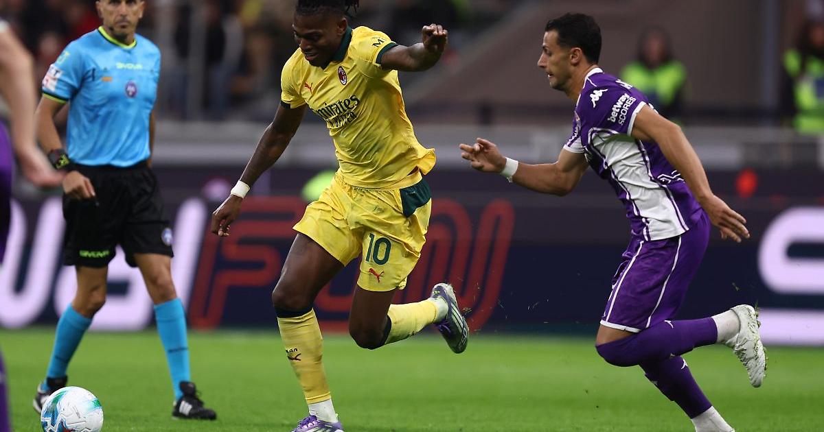 MILANO (ITALPRESS) - Il Milan, nonostante le assenze, vince in rimonta per 2-1 contro la Fiorentina e si regala il primo posto in solitaria in classifica. È una doppietta di Leao (la seconda rete dagli undici metri) a ribaltare il gol di Gosens. Il primo tempo offre davvero poco. La prima opportunità è per i padroni di casa e arriva al 21'. Modric batte un piazzato dalla destra e la palla schizza sul destro di Pavlovic dopo un rimpallo, ma il centrale serbo spedisce alto da ottima posizione. Nei restanti minuti della prima frazione non accade granché e le due squadre vanno così al riposo sullo 0-0. Gli ospiti si fanno vedere per la prima volta all'8' della ripresa, quando Nicolussi Caviglia ci prova di destro dalla lunga distanza ma la palla termine alla destra del palo di un metro abbondante. Due minuti dopo, quasi dal nulla, sono gli uomini di Pioli a passare in vantaggio. Fagioli crossa dalla sinistra, Ranieri rimette al centro di testa e la palla carambola tra Maignan e Gabbia, finendo poi sulla linea di porta con Gosens che mette dentro il più facile dei gol. Lo 0-1 sembra svegliare i rossoneri, anche grazie all'ingresso in campo di Gimenez, e al 18' arriva il pareggio. Leao riceve palla dalla sinistra, si accentra e indovina un piatto destro dal limite dell'area che termina la sua corsa nell'angolino alla sinistra di De Gea (un po' in ritardo). Per il portoghese si interrompe un digiuno in Serie A che, davanti ai propri tifosi, durava addirittura da maggio 2024. Al 31' proprio De Gea si riscatta e compie un miracolo alzando sopra la traversa un sinistro volante di Gimenez, bravo a raccogliere un cross dalla sinistra di Bartesaghi. Al 37', poi, arriva la svolta. Gimenez cade in area per una trattenuta al colletto di Parisi, inizialmente non punita dall'arbitro. Il Var richiama però l'attenzione di Marinelli, che cambia decisione e assegna il calcio di rigore. Dagli 11 metri si presenta Leao, al suo primo tiro dal dischetto in carriera con questa maglia, che spiazza De Gea e completa la rimonta per il 2-1. L'assalto finale dei toscani non porta a vere occasioni e il risultato non cambia più. Il Milan vola così da solo in vetta a quota 16. La Fiorentina resta, invece, in coda, insieme a Genoa e Pisa: profondo viola. - foto Ipa Agency - (ITALPRESS). xh9/pdm/red 19-Ott-25 22:57