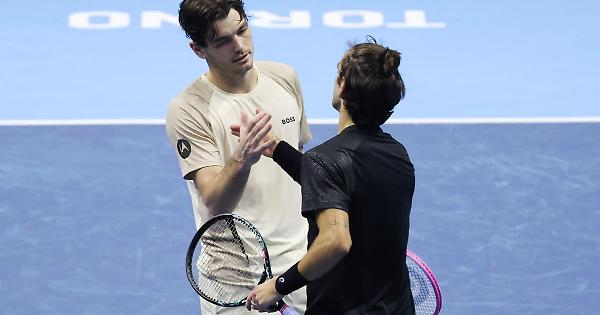 TORINO (ITALPRESS) - Lorenzo Musetti ko all'esordio alle Atp Finals 2025 contro Taylor Fritz. 6-3 6-4, in un'ora e 42 minuti di gioco, il punteggio in favore dello statunitense, numero 6 del mondo, che si conferma il principale candidato per la qualificazione in semifinale, nel girone "Connors", assieme a Carlo Alcaraz. Musetti, numero 9 del ranking Atp, tornerà in campo alla Inalpi Arena di Torino contro Alex de Minaur; mentre Fritz affronterà proprio lo spagnolo, tornato oggi numero 1 del mondo. Nel Gruppo "Connors", al termine della prima giornata, Alcaraz e Fritz sono appaiati in testa con una vittoria all'attivo; mentre sono insieme al terzo posto Musetti e de Minaur, entrambi per il momento a quota zero. - foto Ipa Agency - (ITALPRESS). mec/pdm/gm/red 10-Nov-25 16:40