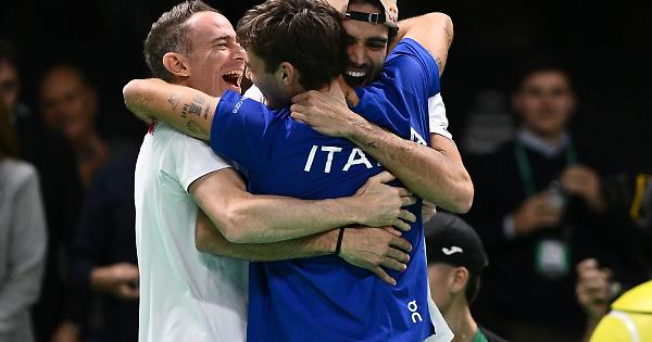 BOLOGNA (ITALPRESS) - L'Italia vola in finale in Coppa Davis. La nazionale capitanata da Filippo Volandri soffre ma batte il Belgio per 2-0, senza passare dal doppio decisivo. Bastano i due singolari agli azzurri nella prima semifinale delle Finals, in scena sul cemento indoor di Bologna. Dopo la vittoria di Matteo Berrettini contro Raphael Collignon (6-3 6-4), il punto del successo l'ha firmato Flavio Cobolli (22 del mondo), battendo Zizou Bergs (numero 43 del ranking Atp) col punteggio di 6-3 6-7 (5) 7-6 (15), dopo poco più di tre ore di autentica battaglia. L'azzurro ha annullato ben sette match point all'avversario. Di contro Cobolli ha chiuso la partita al settimo match point in suo favore (dopo che Bergs gli aveva annullato sei "punti match"). Dopo la finale del 2023, vinta contro l'Australia, e quella dello scorso anno, vinta contro l'Olanda, l'Italia per il terzo anno consecutivo (prima volta nella storia) giocherà l'ultimo atto della Coppa Davis. L'ultima Nazione a giocare tre finali di fila è stata l'Australia, fra il 1999 e il 2001. Si estende a 12 successi la striscia positiva dell'Italia nei match di Coppa Davis. L'ultimo ko risale al 2023, contro il Canada. Non riesce ad approdare alla finale di Davis, invece, il Belgio, ancora a secco di insalatiere e giunto alle Final Eight di Bologna attraverso le qualificazioni. Domenica gli azzurri affronteranno nel match decisivo per la difesa del titolo la vincente dell'incontro tra Germania e Spagna, che si scontreranno domani, a partire dalle 12. - foto Image - (ITALPRESS). pdm/red 21-Nov-25 21:58