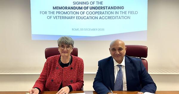 ROMA (ITALPRESS) - L'Agenzia Nazionale di Valutazione del Sistema Universitario e della Ricerca (ANVUR) e la European Association of Establishments for Veterinary Education (EAEVE) hanno firmato oggi a Roma un Protocollo d'intesa volto a promuovere le attività di valutazione della formazione in Medicina Veterinaria e l'assicurazione della qualità dei corsi di laurea offerti dalle università italiane in tale ambito. L'accordo è stato siglato dal Presidente ANVUR, Antonio Felice Uricchio, e dalla Presidente EAEVE, Petra Winter. Il Protocollo mira a coordinare e rendere più efficienti i processi valutativi, anche attraverso la possibilità di introdurre visite congiunte presso le sedi universitarie. Tale approccio favorirà l'integrazione tra il quadro normativo nazionale ed europeo per lo sviluppo dei Veterinary Education Establishments (VEEs). L'accordo si inserisce nel quadro più ampio dello Spazio Europeo dell'Istruzione Superiore (EHEA), nel quale entrambe le parti operano come membri a pieno titolo della European Association for Quality Assurance in Higher Education (ENQA) e come organizzazioni registrate nello European Quality Assurance Register for Higher Education (EQAR). L'iniziativa rappresenta un passo significativo nel consolidare il percorso di internazionalizzazione dell'ANVUR. A seguito della sottoscrizione del Protocollo, l'ANVUR ha tenuto un webinar informativo rivolto agli atenei italiani che offrono percorsi di formazione veterinaria. Durante l'incontro sono intervenuti Alessio Ancaiani, dirigente dell'Area Valutazione delle Istituzioni della Formazione Superiore, e Simone Via, responsabile dell'Unità Internazionalizzazione. I relatori hanno illustrato le finalità strategiche dell'intesa e le prospettive di sviluppo della cooperazione, evidenziando i benefici attesi per le università e per la qualità complessiva dei percorsi formativi in Medicina Veterinaria. - foto ufficio stampa ANVUR - (ITALPRESS). fsc/com 03-Dic-25 17:48