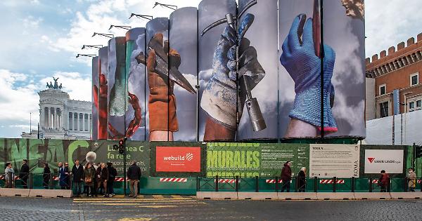 ROMA (ITALPRESS) - Piazza Venezia si conferma palcoscenico di arte pubblica con l'inaugurazione di 'TOOLS' di Elisabetta Benassi, la terza installazione del ciclo 'MURALES. Arte contemporanea in metro', opera omaggio alla comunità dei lavoratori — archeologi e operai — i veri 'Eroi Nascosti', il cui sforzo quotidiano è oggi motore della trasformazione infrastrutturale di Roma. Il progetto artistico è realizzato grazie al consorzio costruttore della Linea C della Metropolitana di Roma guidato da Webuild e Vianini Lavori, con il patrocinio di Roma Capitale e in collaborazione con le Soprintendenze competenti, con l'obiettivo di trasformare il cantiere in un simbolo di innovazione e rigenerazione urbana, coniugando la bellezza di Roma con la sua necessità di evolvere. Alla cerimonia di svelamento dell'opera hanno partecipato il sindaco di Roma Roberto Gualtieri, Renata Cristina Mazzantini Direttrice della Galleria d'Arte Moderna e Contemporanea di Roma e presidente del Comitato Scientifico del progetto Murales e l'artista Elisabetta Benassi, insieme a Pietro Salini, Amministratore Delegato di Webuild e Vincenzo Onorato, Amministratore Delegato di Vianini Lavori. Presenti inoltre per il consorzio Metro C, Franco Cristini e Fabrizio Paolo Di Paola, rispettivamente Presidente ed Amministratore Delegato della società. "Roma è nata dal lavoro, dalla stratificazione incessante generata da mani, visioni e materiali, che hanno costruito la sua storia millenaria - ha dichiarato Salini - È questa la forza che l'opera celebra: il lavoro collettivo degli operai e degli archeologi che sta trasformando il sottosuolo per costruire la Roma moderna. Questo cantiere, che con il progetto 'MURALES' diventa una piattaforma culturale, è la testimonianza visibile di un impegno che va oltre l'ingegneria. Stiamo lavorando per contribuire a dare a questa città infrastrutture essenziali per la mobilità e la connettività. La Linea C è una spina dorsale della città realizzata in condizioni ingegneristiche e archeologiche complesse, che procede anche grazie alla stretta collaborazione tra imprese, istituzioni e comunità, con l'obiettivo comune di rendere Roma sempre più moderna e all'avanguardia". In 'TOOLS', l'artista si è concentrata sulle mani degli operai e degli archeologi del cantiere, fotografate mentre stringono gli strumenti del loro lavoro quotidiano (chiavi inglesi, scalpelli, cavi elettrici, catene, bulloni, spugne), per costruire ma anche per riportare alla luce reperti preziosi dal passato. L'opera stabilisce un legame simbolico e storico profondo con la città, ispirandosi ai simboli utilizzati per gli Angeli del Bernini su Ponte Sant'Angelo a Roma, che recano gli strumenti della Passione di Cristo. Come quegli angeli, sette lavoratori del cantiere tengono in mano i loro strumenti di lavoro, unendo sacro e laico, antico e contemporaneo in un'immagine doppia. Se gli strumenti del Bernini raccontano un momento drammatico, quelli rappresentati dall'operaevocano l'epicità del lavoro quotidiano - stringere, serrare, pulire, scalpellare, scavare - celebrando la forza simbolica della creazione e del saper fare. La nuova opera inedita, dedicata al tema del lavoro, nell'ambito del progetto 'MURALES' a cura di Spazio Taverna, prende il posto di 'Ci eleviamo sollevando gli altri' di Marinella Senatore, a sua volta succeduta a 'Costellazioni di Roma' di Pietro Ruffo, continuando a trasformare i silos del cantiere della Stazione Venezia in una monumentale installazione a cielo aperto. Il progetto 'MURALES' si inserisce in un quadro di avanzamento dei lavori cruciali per la Capitale: nel cantiere di Stazione Venezia ha visto completare la prima macrofase dei lavori, con scavi fino a 85 metri di profondità che porteranno alla luce l'antica Via Flaminia, per passare poi alla nuova macrofase. In parallelo, il consorzio costruttore ha consegnato due archeo-stazioni cruciali, Colosseo/Fori Imperiali e Porta Metronia, la cui apertura al pubblico è prevista il 16 dicembre. Queste stazioni sono un modello internazionale di successo frutto di una stretta collaborazione tra istituzioni e imprese, che ha permesso tra l'altro di valorizzare il ritrovamento di una caserma romana a Porta Metronia. L'impegno del consorzio prosegue anche per la progettazione esecutiva della Tratta T2 (Venezia-Clodio/Mazzini) che include due nuove archeo-stazioni, San Pietro e Chiesa Nuova. - Foto ufficio stampa Webuild - (ITALPRESS). xb1/sat/red 05-Dic-25 16:10
