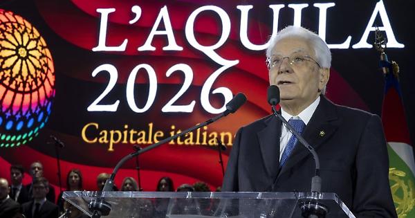 L'AQUILA (ITALPRESS) - "Il ruolo di Capitale della Cultura non è esclusivo delle istituzioni, riguarda la collettività, la comunità, L'Aquila, la provincia, la Regione. È un'opportunità e una occasione di crescita nella conoscenza e nell'incontro. Un augurio a tutti gli aquilani e i giovani affinché possano trarre stimoli e valori da porre a frutto per il futuro delle loro comunità. La cultura è motore e collante delle civiltà". Così il presidente della Repubblica, Sergio Mattarella, nel corso della cerimonia inaugurale di L'Aquila 2026 Capitale italiana della Cultura. "L'immenso valore della cultura risalta ancor di più in questo periodo storico in un mondo dove sono molteplici i motivi di preoccupazione, guerre, volontà di dominio sugli altri, strategie predatorie che pensavamo archiviate dal Novecento sono riapparse con il loro carico di morte e devastazione. La cultura è strumento principe di convivenza, dialogo, di impegno e ricerca comune e dunque di pace", ha aggiunto. Per il capo dello Stato "la nostra responsabilità è consentire di svilupparsi, di farsi strada, di seminare e lasciare traccia. Investire in cultura vuol dire investire nella comunità, nello sviluppo della coscienza civile, vuol dire investire in democrazia". Inoltre, ha sottolineato, "cultura è il rifiuto di ogni forza ostile che cerchi di comprimere l'umanesimo. Dobbiamo saper attingere e ispirarci alle nostre radici. L'Aquila, capitale del perdono, è dunque 'capitale di pace e riconciliazione', così disse Papa Francesco durante la sua visita nell'agosto 2022. C'è tanto bisogno di questo seme nel mondo in cui ci troviamo, un seme che può rendere ancora più preziosa e affascinante l'anno di Capitale della Cultura italiana che questa città impersona e interpreta", ha concluso Mattarella. (ITALPRESS). -Foto: Quirinale- xb1/ads/red 17-Gen-26 13:20