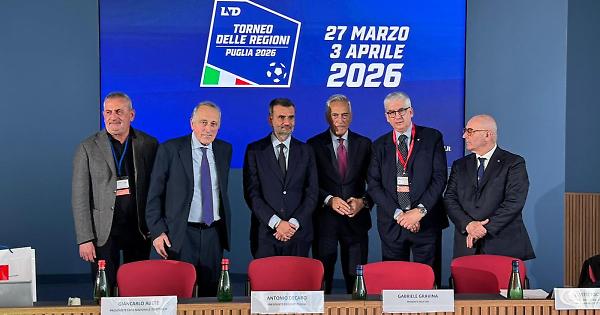 BARI (ITALPRESS) - Uno dei tornei più storici e importanti per il movimento giovanile. La 62^ edizione del prestigioso Torneo delle Regioni di calcio a 11, la più antica manifestazione nazionale dedicata al calcio giovanile, è stata presentata stamane a Bari nello spazio Agorà del Consiglio regionale della Puglia. Il 'tacco d'Italia', infatti, dal 27 marzo al 3 aprile tornerà a ospitare il torneo dopo 38 anni. Nel corso dell'evento sono state sono state illustrate le linee guida del Torneo delle Regioni 2026 ed è stato presentato il calendario ufficiale delle gare: saranno quasi 150 le partite che interesseranno le province di Bari, Brindisi, Lecce e Taranto, di fatto un'area ampia del territorio regionale, da Acquaviva delle Fonti a Gallipoli, toccando, tra le altre, Mola di Bari, Capurso, Putignano, Noci, Locorotondo, Alberobello, Conversano, Fasano, Manduria, Ceglie Messapica, Mesagne, Oria, Latiano, Torre Santa Susanna, Parabita e Maglie. Un'estensione che, secondo gli organizzatori, restituisce pienamente la portata sportiva, organizzativa e territoriale della più importante manifestazione italiana riservata al calcio giovanile. Le partite si disputeranno su 19 campi in erba artificiale distribuiti nelle quattro province pugliesi coinvolte: Bari, Brindisi, Lecce e Taranto. All'incontro hanno preso parte, tra gli altri, il presidente della Regione Puglia, Antonio Decaro, il numero 1 della Figc, Gabriele Gravina, il presidente della Lega Nazionale Dilettanti, Giancarlo Abete, e il massimo dirigente del Comitato regionale Puglia Lnd, Vito Tisci. "Il Torneo delle Regioni - ha sottolineato Decaro - è una manifestazione importante, che torna dopo 38 anni nella nostra regione. Il calcio dilettantistico è una palestra dal punto di vista umano e dal punto di vista sociale, ma è anche un grande attrattore dal punto di vista turistico, perché questo evento permetterà di conoscere tanti borghi che magari sono poco conosciuti, ma che custodiscono bellezze, cultura e storia. Quando lo sport, la cultura e il turismo stanno insieme, è un fatto positivo, in una regione che sarà Regione europea dello sport, nella quale arriveranno centinaia di tesserati: sarà una grande occasione soprattutto per la Puglia, in un momento particolare della storia della nostra regione". "Questo torneo - ha spiegato Gravina - non è solo sportivo. È un torneo culturale e turistico: i ragazzi e le ragazze, oltre a giocare a calcio, potranno apprezzare le bellezze, la tradizione dell'ospitalità pugliese, la costa, il mare. Ecco: è un torneo che ha una grande aspettativa anche da parte dei ragazzi e delle ragazze. Si disputerà su 19 campi, arriveranno 2000 giovani qui in Puglia, quindi ci sarà anche un grosso ritorno economico e turistico, un impatto forte per l'economia pugliese". "Lo sport - ha affermato Abete - è di tutti. La Lega Nazionale Dilettanti ha due gambe: quella competitiva e agonistica e quella sociale, importantissima. Parliamo di un mondo di 1 milione e 100mila tesserati, di 11mila società, comprensivo del settore giovanile, 60mila squadre e 580mila partite ufficiali, con la presenza in 7896 comuni d'Italia e la volontà, naturalmente, di continuare questa semina, che non ha solo motivazioni collegate a un sano benessere di chi gioca, ma anche al fatto di mantenere vive le comunità attraverso la squadra di calcio, soprattutto in periodi in cui dobbiamo confrontarci con denatalità e crisi demografica". "Quello che abbiamo presentato oggi - ha concluso Tisci - è un evento straordinario, che la Puglia abbraccia come sempre con il suo affetto, a maggior ragione considerando che non ospitava questo evento da 38 anni. L'idea è quella di un percorso importante, in un anno fondamentale per lo sport nazionale e internazionale, ma soprattutto per la Puglia, che oltre a questo evento avrà anche il piacere e l'orgoglio di poter ospitare i giovani del Mediterraneo. Questo è un evento di punta della Lega Nazionale Dilettanti, un progetto che mira non solo alla valorizzazione dell'aspetto tecnico e agonistico, ma anche e soprattutto alla formazione dei giovani italiani. Qui arriveranno duemila giovani che saranno accolti in questa meravigliosa regione". - Foto xa2/Italpress - (ITALPRESS). xa2/ari/red 07-Feb-26 13:25