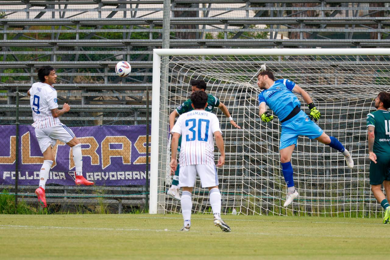 Nella ripresa la prima azione degna di nota è al 10’ con Lo Sicco che recupera palla a centrocampo, avanza e conclude, la sfera termina fuori. Sul tiro il capitano biancorossoblù si fa anche male ed è costretto al cambio con Marino. Al 16’ Lepri mette in mezzo una palla che viene intercettata di testa da Scartoni, ma la sfera termina la sua corsa in rete per il vantaggio del Seravezza. Al 27’ il Seravezza trova anche il raddoppio, con Benedetti che riceve palla in posizione defilata e batte Antonini. Al 34’ Bramante tenta la scossa con un bel tiro da fuori, la palla sfiora l’incrocio. Al 36’ Zona penetra in area e viene steso, ma per l’arbitro è punizione dal limite. Calcia Bramante ma colpisce la barriera. Al 43’ Raineri impegna Antonini in tuffo, palla in corner. Al 47’ la conclusione è di Giustarini, palla a lato di un soffio. Finisce così, con il risultato di 0-2 per il Seravezza.