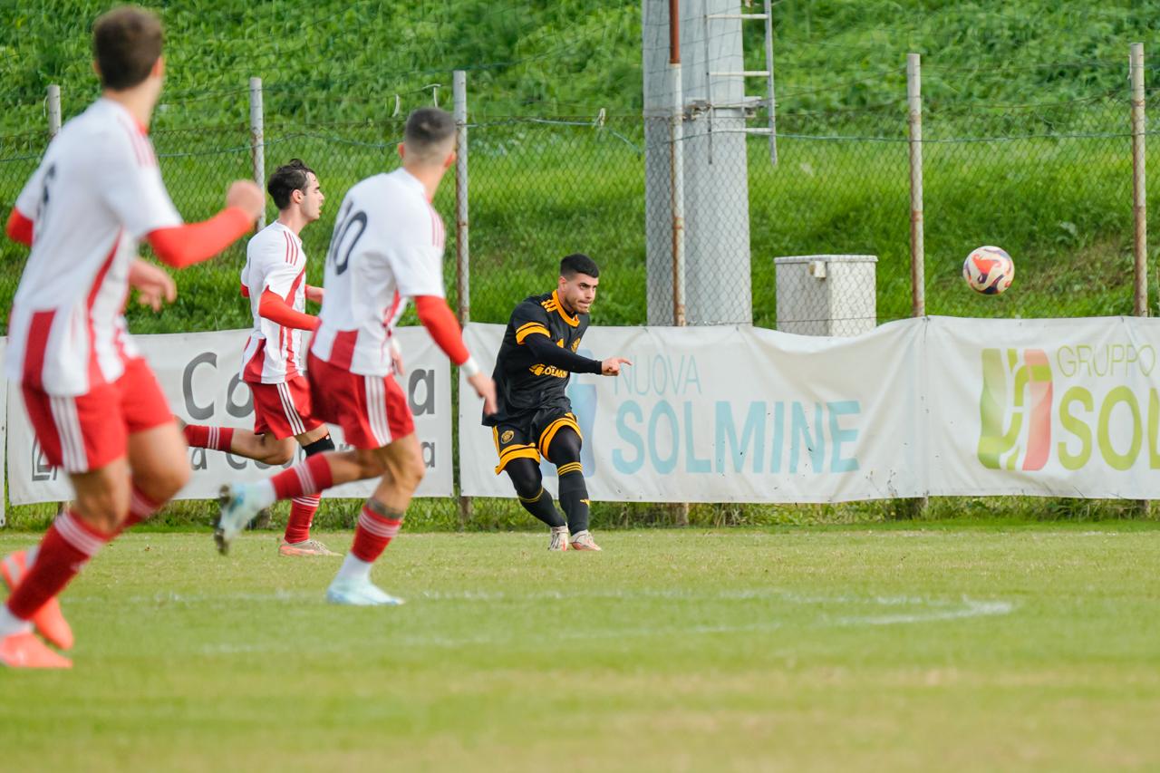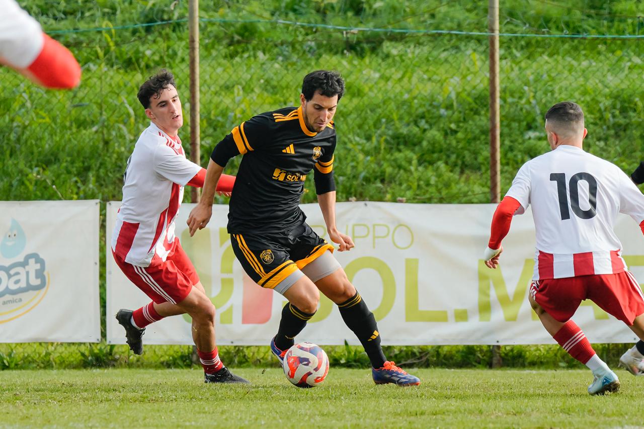Gli ospiti partono meglio come atteggiamento e sfiorano subito il vantaggio. Il gol invece arriva su rigore alla mezz’ora, anche se l’azione nasce da un presunto fallo su Rossetti. Il rinvio lungo giunge dalle parti di D’Aniello, che viene steso da Badji e l’arbitro indica il dischetto. Dagli 11 metri si presenta lo stesso D’Aniello, che non sbaglia. Lo Scarlino fatica a reagire e la gara resta contratta, con pochi sussulti. L’unica occasione arriva da un tiro dalla distanza di Ciurli, ma è velleitario. Nella ripresa cambia l’atteggiamento dei giallorossi, che schiacciano gli ospiti nella propria metà campo. Arrivano due grandi opportunità per Rossetti. La prima su cross di Zaccariello, con il colpo di testa nell’area piccola che però finisce centrale. Nella seconda si gira bene e calcia sul secondo palo, sfiorando il gol. La rete arriva nel finale su mischia in area su calcio d’angolo, respinta corta, batti e ribatti e Bastieri che calcia da distanza ravvicinata, trovando il pareggio. Un 1-1 sostanzialmente giusto.