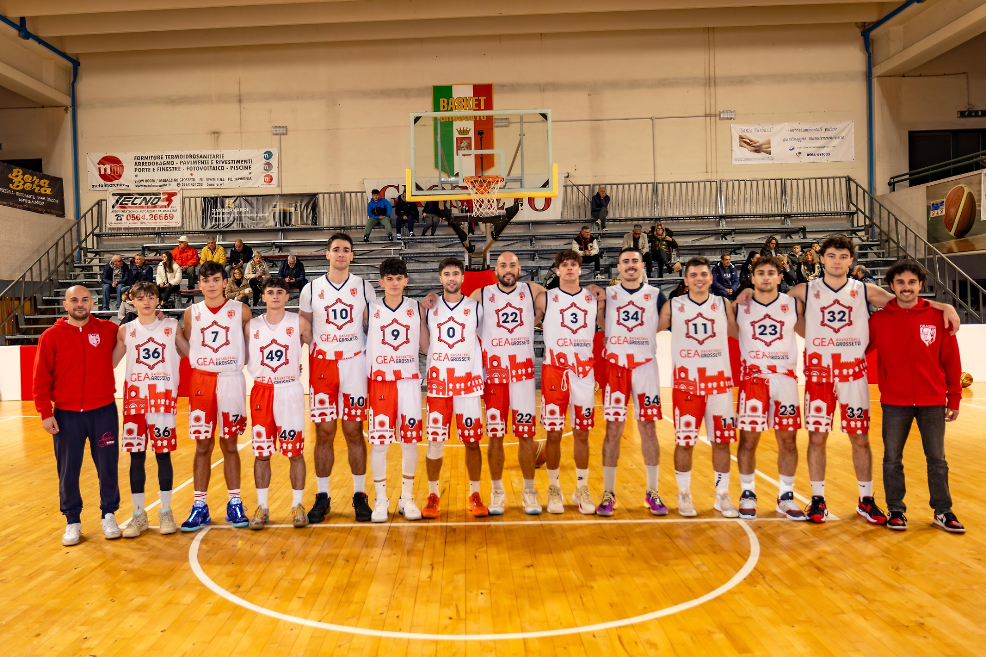I dieci minuti iniziali sono stati giocati sul filo dell’equilibrio, con la Gea che va al primo riposo avanti di cinque lunghezze (22-27). Furi e compagni, con una grande difesa e un attacco quasi perfetto, cambiavano il volto alla partita nel secondo quarto, mettendo insieme un parziale di 8-24, che consente di andare all’intervallo avanti di 21 punti, dopo aver avuto un vantaggio addirittura Nella terza frazione, giocata a ritmi altissimi, il Grosseto lascia per strada un solo punto del suo vantaggio, mentre nel finale i versiliesi aumentano la pressione e recuperano ben dodici punti (con un parziale di 30-18), ma i biancorossi controllano con qualche patema (per la precisione dei tiratori avversari, che ribattevano colpo su colpo) e portano a casa il successo sperato, che permette di trascorrere un sereno Natale e di poter preparare con la massima tranquillità l’impegno della Final Four del 5-6 gennaio.