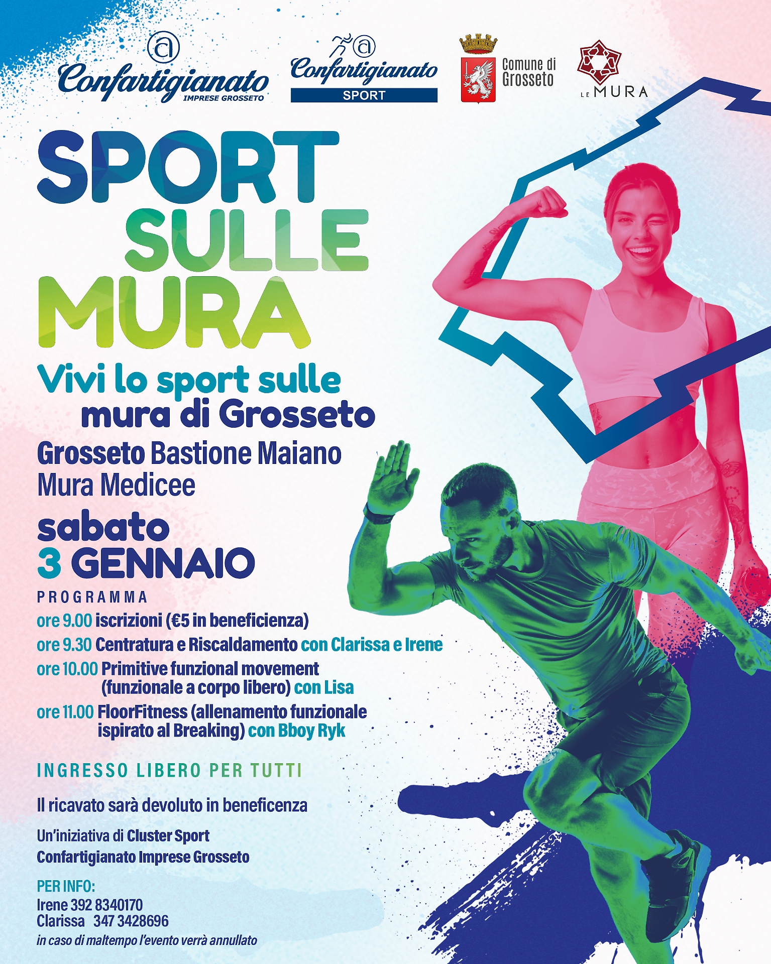 “Sport sulle Mura continua a essere un’occasione per vivere lo sport come esperienza condivisa, valorizzando al tempo stesso uno dei luoghi più rappresentativi della città – sottolineano da Confartigianato Imprese Grosseto – . Un progetto che unisce movimento, benessere e partecipazione”. In caso di maltempo l’evento sarà annullato. Per informazioni rivolgersi a Irene (392 8340170) e a Clarissa (347 3428696).
