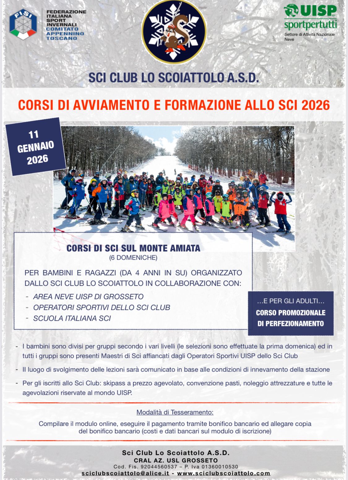 L’attività è organizzata in collaborazione con Area Neve Uisp Grosseto, la Scuola italiana sci e gli operatori sportivi dello sci club, una rete che garantisce qualità, sicurezza e attenzione alle esigenze di ogni partecipante.