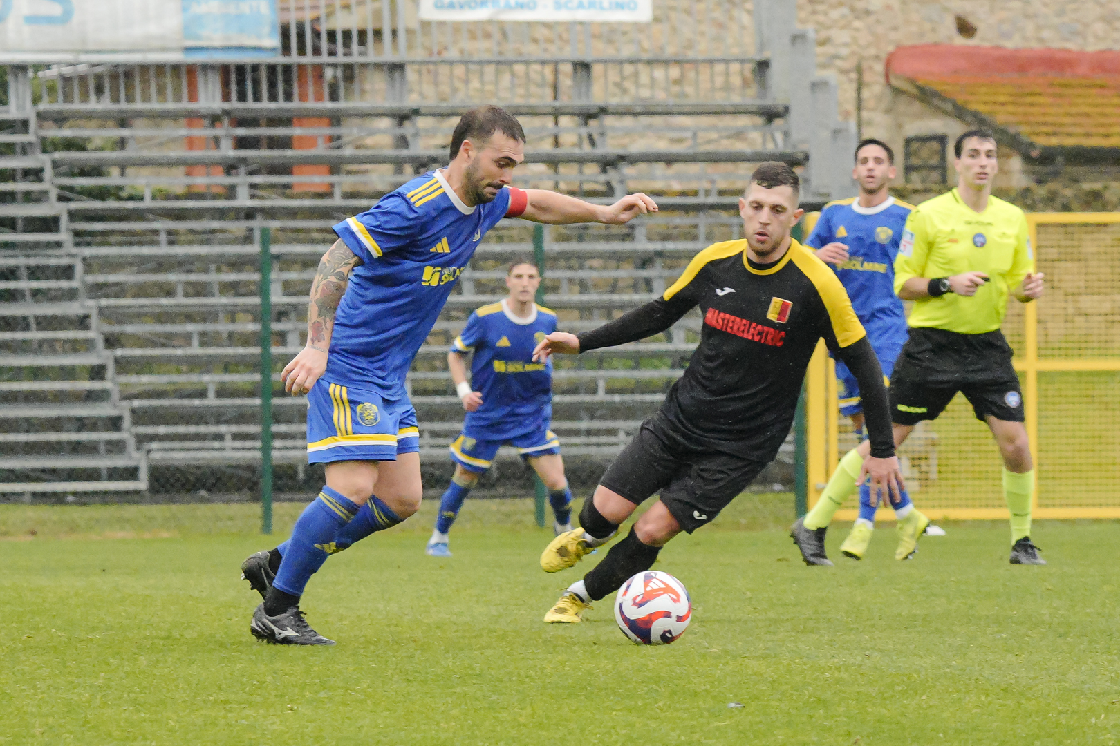 Lo Scarlino fa la partita fin dall’avvio: al 20’ Politi sfiora il vantaggio di testa su calcio d’angolo, con il pallone che esce di un soffio. Alla mezz’ora ci prova Ciurli dalla distanza, ma il tiro termina alto, poi ancora il numero 8 giallorosso impegna la difesa ospite su punizione che esce di poco.