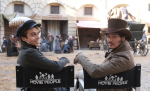 Un frame della miniserie e i ritratti di Giacomo Leopardi e Fanny Targioni Tozzetti