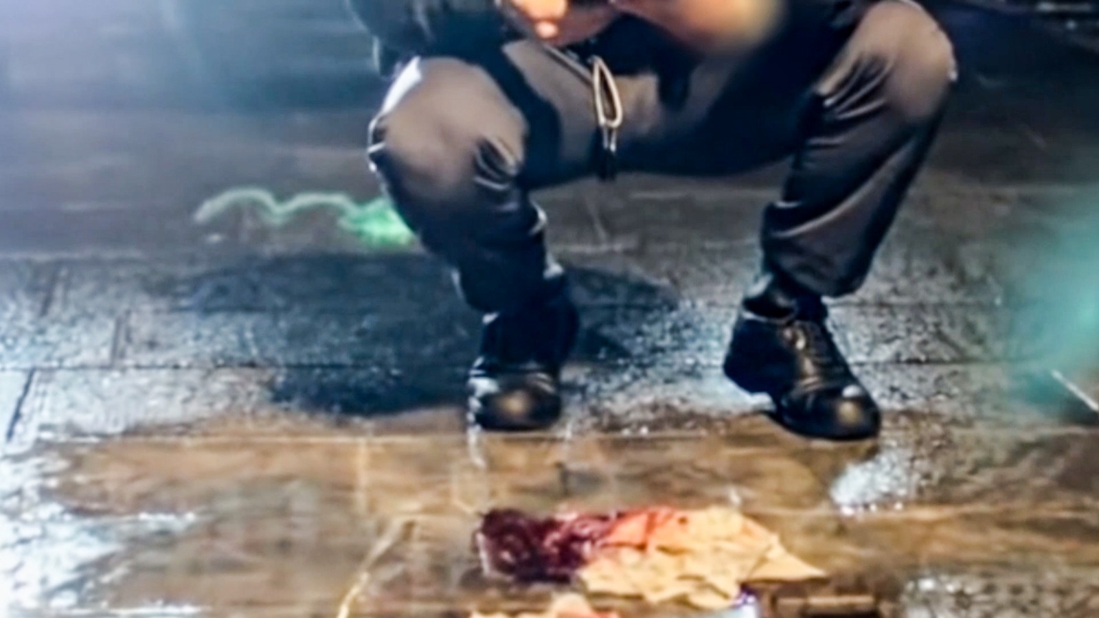 Il fazzoletto macchiato del sangue del ragazzo ferito in centro (immagine ricostruita digitalmente)