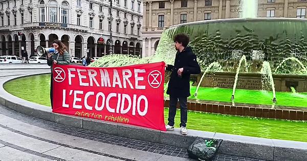 Cop30, Extinction Rebellion tinge di verde fiumi, mari e fontane in tutta Italia