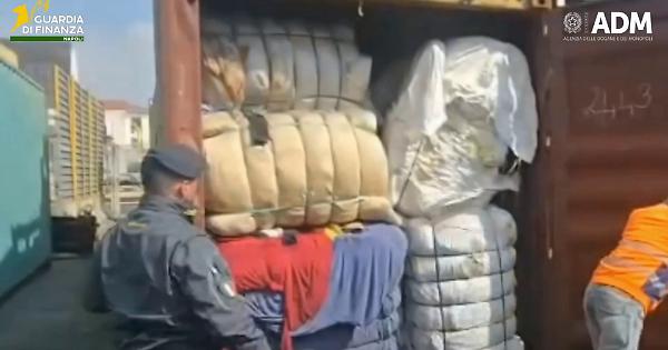 Sequestrati al porto di Napoli 130kg di rifiuti tessili