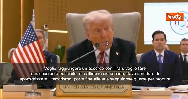 "Voglio raggiungere un accordo con l'Iran, voglio fare qualcosa se è possibile, ma affinché ciò accada, deve smettere di sponsorizzare il terrorismo, porre fine alle sue sanguinose guerre per procura e cessare in modo permanente e verificabile la sua ricerca di armi nucleari... Esorto con forza tutte le nazioni a unirsi a noi nell'applicazione totale e completa delle sanzioni che ho appena imposto all'Iran." Lo ha detto Donald Trump a Ryad.