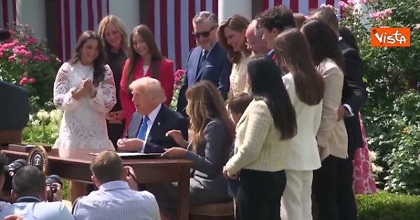 "È per me un onore firmare ufficialmente la legge 'Take It Down Act'... Con l'avvento della generazione di immagini tramite intelligenza artificiale, innumerevoli donne sono state molestate con deepfake e altre immagini esplicite distribuite contro la loro volontà... Stiamo rendendolo totalmente illegale." Così Trump firmando la legge voluta da Melania contro il revenge porn nel Giardino delle Rose della Casa Bianca, circondato da donne.