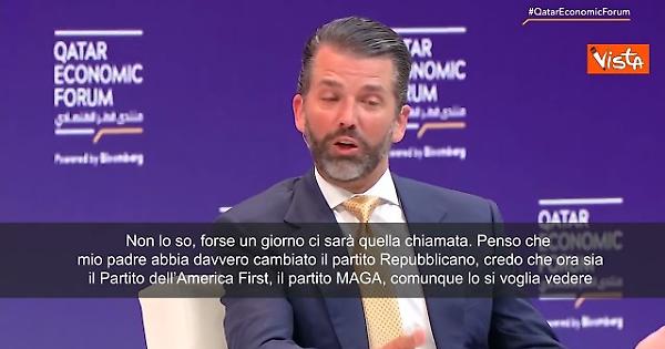 Non lo so, forse un giorno ci sarà quella chiamata. Penso che mio padre abbia davvero cambiato il partito Repubblicano, credo che ora sia il Partito dell’America First, il partito MAGA, comunque lo si voglia vedere". Così Donald Trump Jr., figlio maggiore del Presidente Donald Trump, rispondendo a una domanda al Qatar Economic Forum.