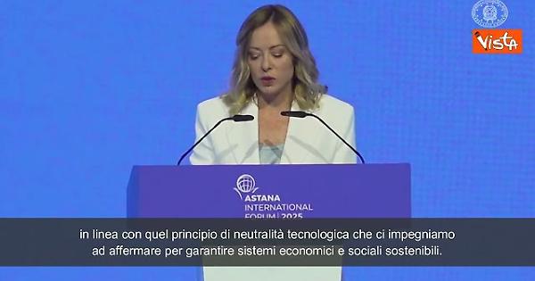 "Se vogliamo davvero dare forma al futuro dobbiamo avere il coraggio di guardare oltre i nostri confini geografici e tracciare nuove strade. Partendo, naturalmente, da ciò che già ci unisce e rende il nostro rapporto estremamente forte. Penso al settore energetico, dove la nostra cooperazione può contribuire a fare la differenza, sia nei settori più tradizionali che in quelli più innovativi, in linea con quel principio di neutralità tecnologica che ci impegniamo ad affermare per garantire sistemi economici e sociali sostenibili. Citiamo poi anche le materie prime critiche, dove la nostra collaborazione mira a generare benefici condivisi e opportunità reciproche. Non dimentico le sfide ambientali, come quella che ci vede in prima linea negli sforzi di rigenerazione del Lago d'Aral, patrimonio che è nostro compito e dovere proteggere. Il Fondo Italiano per il Clima è uno strumento importante che vorremmo sfruttare ancora di più per rafforzare ulteriori progetti comuni. Le nostre interconnessioni guardano anche alle infrastrutture digitali e fisiche, di cui il Middle Corridor rappresenta probabilmente la sfida più promettente e affascinante. Crediamo fermamente nel potenziamento di questo progetto, che è al centro del partenariato strategico avviato con l'Ue a Samarcanda e può dare un contributo significativo alla sicurezza e alla stabilità della catena di approvvigionamento, sia da che verso l'Europa" così la premier Giorgia Meloni, intervenendo all'Astana International Forum, tenutosi presso Astana, capitale del Kazakistan.