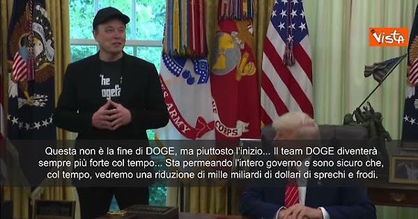 "Finisce il mio mandato ma il lavoro del Doge non è finito, anzi inizia ora", così Elon Musk alla Casa Bianca nella conferenza stampa di saluto al termine dei 130 giorni del suo mandato governativo.