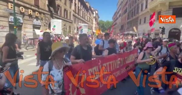 "No bavaglio", lo striscione al corteo a Roma contro il Dl Sicurezza