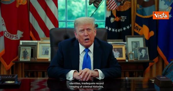 Il recente attacco terroristico a Boulder, in Colorado ha evidenziato gli estremi pericoli che l'ingresso di cittadini stranieri non adeguatamente controllati pone al nostro Paese. I Paesi interessati al divieto sono Afghanistan, Myanmar, Ciad, Repubblica del Congo, Guinea Equatoriale, Eritrea, Haiti, Iran, Libia, Somalia, Sudan e Yemen. Molti dei questi Paesi hanno rifiutato di accettare il rimpatrio dei propri cittadini con un inaccettabile e palese disprezzo per le leggi sull'immigrazione degli Stati Uniti. Inoltre, ho anche disposto il divieto di ingresso ai cittadini stranieri che desiderano venire negli Stati Uniti per partecipare, esclusivamente o sostanzialmente, a un programma di studio presso l'Università di Harvard". Lo ha annunciato Trump in un videomessaggio.