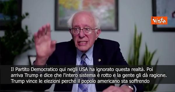 “Quindi Trump vince le elezioni perché la maggioranza del popolo americano sta soffrendo. Vuole un cambiamento e i Democratici, a mio avviso, non hanno offerto un'alternativa al trumpismo.” Così il senatore degli Stati Uniti per il Vermont Bernie Sanders durante il suo intervento al 2nd International Conference on Democracy Social Justice.