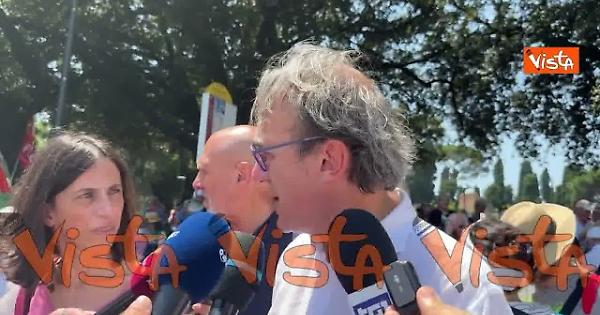 “Il mondo è sull'orlo di un baratro, di una guerra globale, anche nucleare. Giorgia Meloni sta umiliando l'Italia, non esiste una politica estera d'Italia, esiste quella di Trump.” Così il deputato di Alleanza Verdi e Sinistra Angelo Bonelli, in un punto stampa a Porta San Paolo, alla manifestazione contro il riarmo.