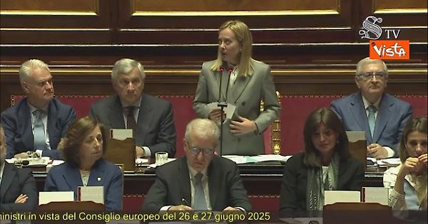 “Siamo ancora fiduciosi del fatto che si possa andare avanti con una tregua, che dalla tregua dalla tregua si possa tornare a quelle negoziazioni per le quali l'Italia ha lavorato fin dall'inizio.” Così la Presidente del Consiglio Giorgia Meloni, durante il suo intervento al Senato in vista del Consiglio europeo del 26 e 27 giugno. / Senato.