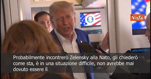 “Probabilmente incontrerò Zelensky alla Nato, gli chiederò come sta, è in una situazione difficile, non avrebbe mai dovuto essere lì.” Così il Presidente degli Stati Uniti Donald Trump a bordo dell'Air Force One.