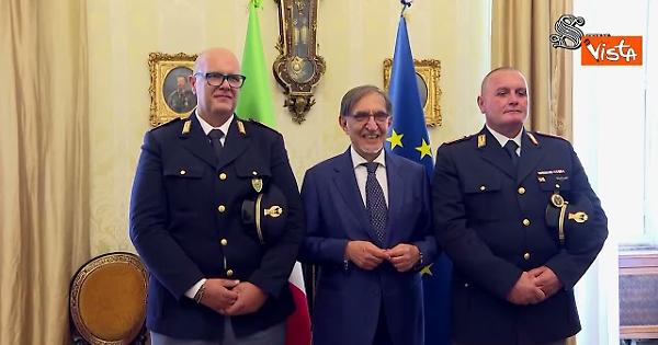 "Ho ringraziato i due agenti che hanno raccolto il mio invito e hanno voluto venire a trovarmi al Senato. Qui ho potuto rivolgere loro i segni della mia vicinanza, della mia solidarietà e l'auspicio che la vicenda giudiziaria, che doveva iniziare per necessità giuridica ma non per necessità morale, si concluda rapidamente, sperando che in futuro ci possa essere una norma che, quantomeno per le forze dell'ordine, eviti anche l'iscrizione nel registro degli indagati pur conservando tutti i diritti della difesa per evitare che un atto a garanzia delle persone a volte si trasformi in un danno. Comunque al di là di questo è stato veramente per me un piacere poterli incontrare ed esprimere la mia vicinanza e solidarietà" così il Presidente del Senato Ignazio La Russa, dopo aver incontrato a Palazzo Madama il Vice Ispettore di Stato, Ivan Lupoli e il Sovrintendente della Polizia di Stato Giuseppe Cavallo, i due agenti intervenuti per assicurare alla giustizia gli assassini del Brigadiere Capo Legrottaglie.